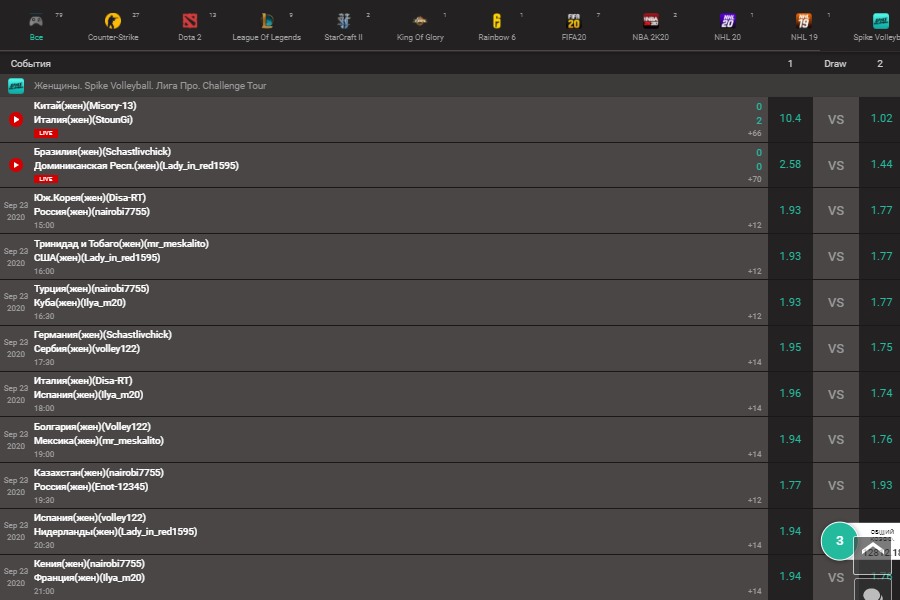 Да. Раздел киберспорта доступен на сайте круглосуточно, списки спортивных встреч обновляются постоянно, что привлекает большое количество клиентов-пользователей.